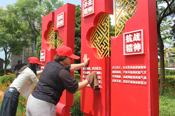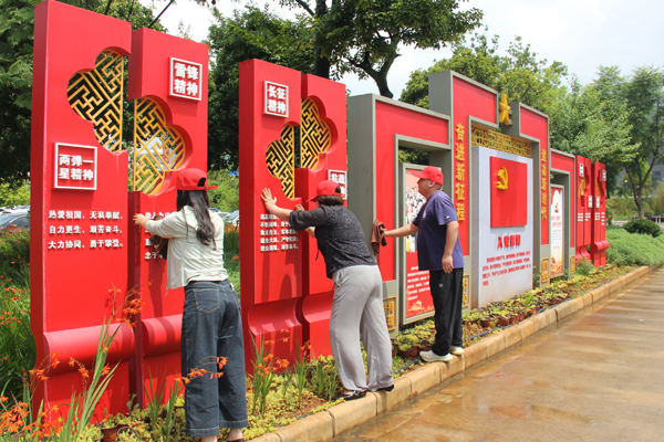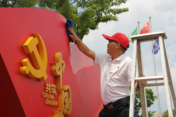 根據活動安排,勞動任務明確分工,按地域劃分為幾個板塊進行。在公司新區,十余名黨員在黨群工作部的現場分配下,負責擦拭黨建文化長廊的雕塑。大家拿著抹布,相互配合,仔細清理雕塑上的灰塵,讓每一處細節都煥發光彩,使黨建文化長廊更顯整潔莊重。