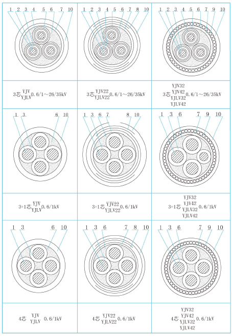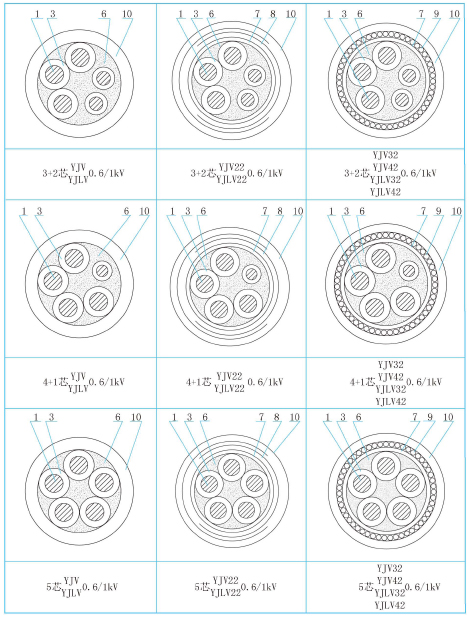 5.8 YJV22、YJLV22型的電纜外徑與YJV62、YJLV62型相等;YJV32、YJLV32型的電纜外徑與YJV72、YJLV72型相等。